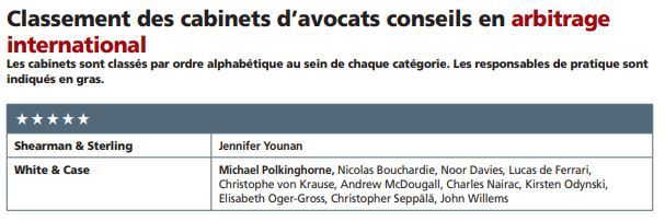 Dans ce contexte en reconfiguration, des acteurs pourraient émerger. Signature Litigation affiche ses ambitions avec la création d’un département arbitrage à Paris sous la houlette de l’associée Flore Poloni, transfuge d’August Debouzy. Tout comme Asafo. Le cabinet fondé en 2019 continue de se staffer. Il a enregistré en octobre 2020 l’arrivée en tant qu’associée d’Isabelle Rouche (ex-Gide). Jeantet a pour sa part renforcé son département arbitrage international, avec une orientation pays de l’Est, en nommant en septembre 2020 comme nouvelle associée la Roumaine Ioana Knoll-Tudor, jusque-là basée à Budapest (Hongrie). A la même période, Taylor Wessing a coopté Laure Hüe de La Colombe, qui officiait depuis 2004 au sein du cabinet ; elle prend la tête de la pratique arbitrage international en tant qu’associée. Fieldfisher, dont un client vante l’efficacité, la réactivité, le professionnalisme, avait déjà recruté fin 2019 Marily Paralika, forte d’une décennie d’expérience chez White & Case, pour développer son offre. Pour sa part, ce dernier a coopté, en janvier 2021, Lucas de Ferrari comme associé. Quant à Claudia Annacker, la spécialiste en arbitrage d’investissement a quitté, en septembre 2020, Cleary Gottlieb Steen & Hamilton pour booster la pratique de Dechert. Elle a été rejointe, en janvier 2021, par Eniko Horvath, autre transfuge de chez Cleary.