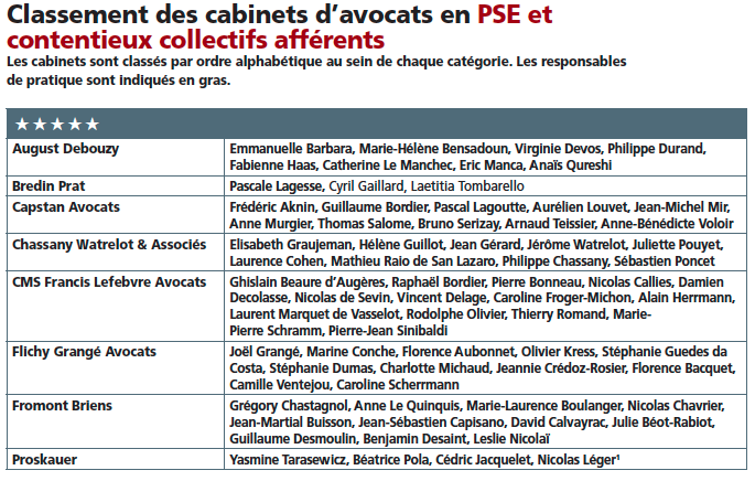 Au sein du classement, les spécialistes du droit social, comme Capstan, Flichy Grangé Avocats ou Chassany Watrelot & Associés, occupent toujours les meilleures places. A leurs côtés se trouvent également des cabinets généralistes disposant d’équipes reconnues en droit du travail, comme Proskauer, Bredin Prat, August Debouzy ou encore CMS Francis Lefebvre Avocats. De Pardieu Brocas Maffei et Freshfields ont également fait une belle année. Par ailleurs, des nouveaux noms font leur entrée au sein de cette catégorie.